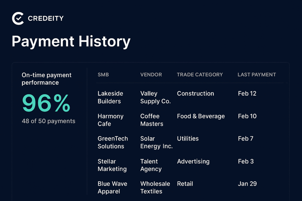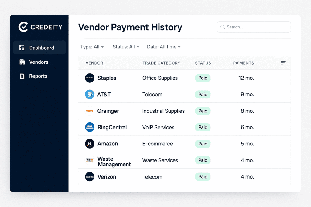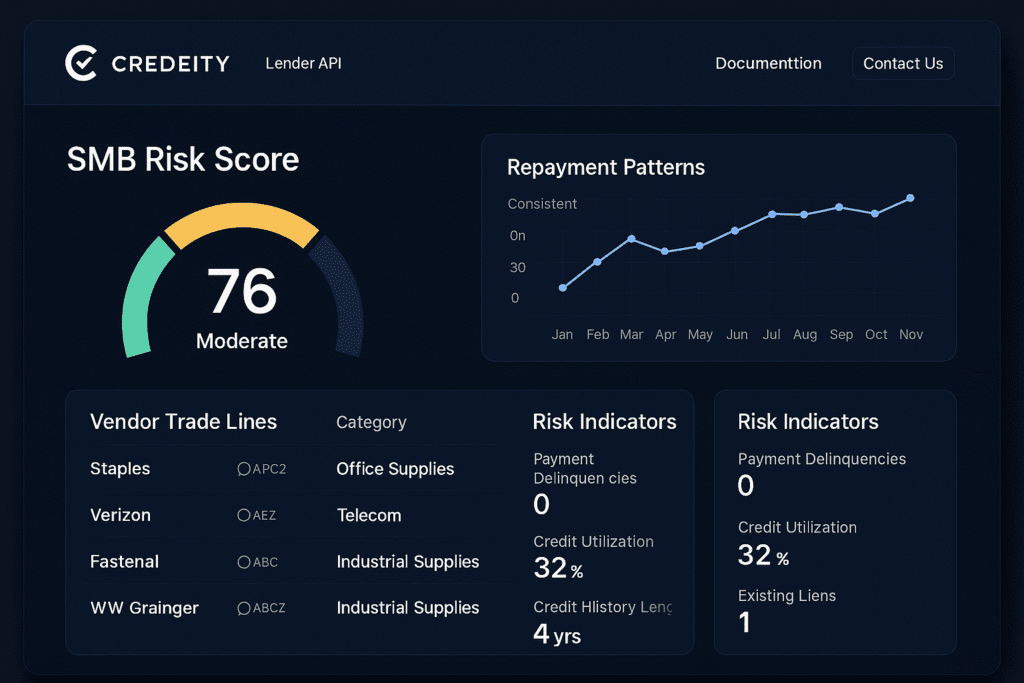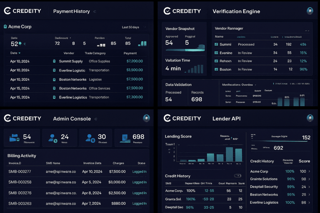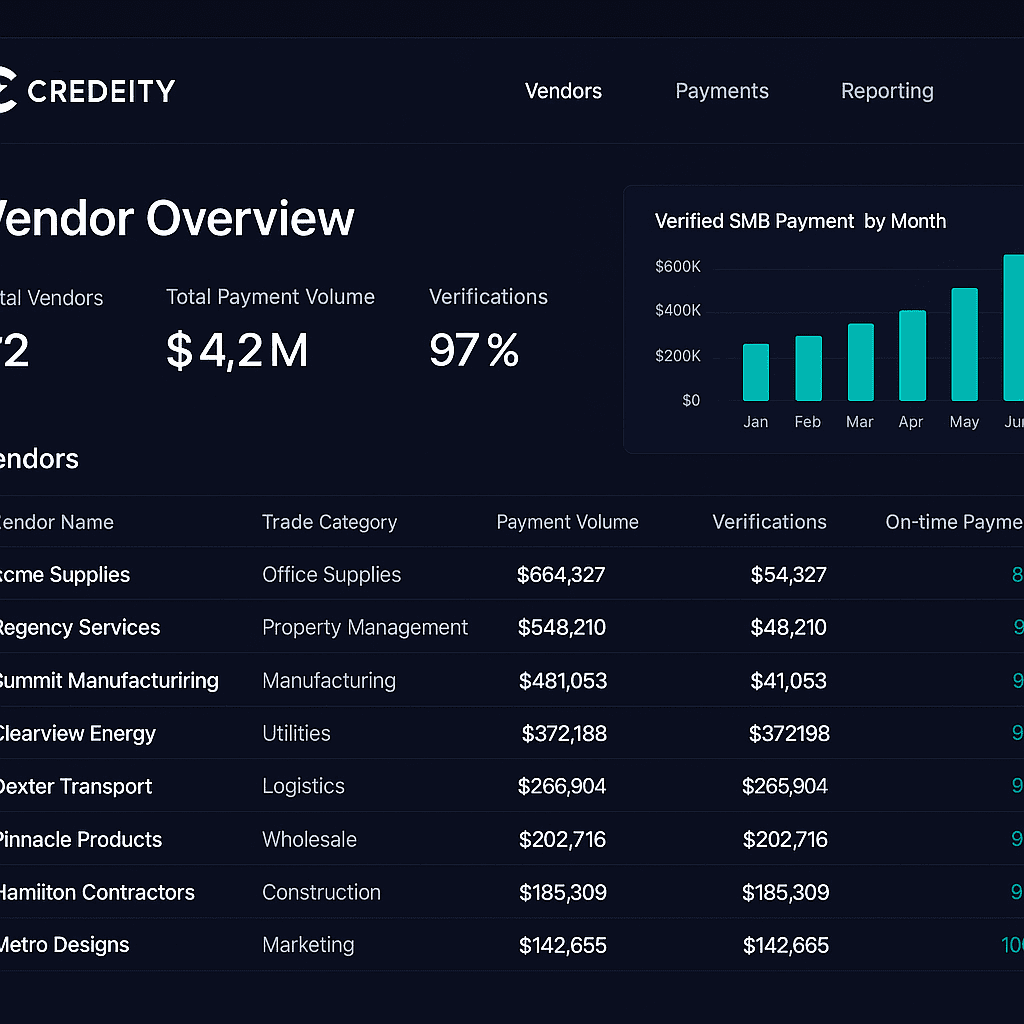 Credeity transforms vendor payment behavior into verified business credit—helping SMBs access financing and helping vendors improve cash flow and reduce risk.